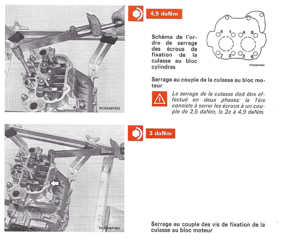 • je ne connais pas ce moteur mais la mécanique reste de la mécanique pour les goujons pas besoin de les changer car ça reste un serrage au couple, pour le sens c'est en escargot en partant du centre, pour le couple c'est un peut plus difficile mais entre 40 Nm et 45 Nm tu ne dois pas etre loin de la vérité, par contre il serrait bien de faire surfacer la culasse, de faire au moins un rodage soupapes, pour le joint cuivre c'est à voir je ne sais pas si tu auras une bonne étanchéité