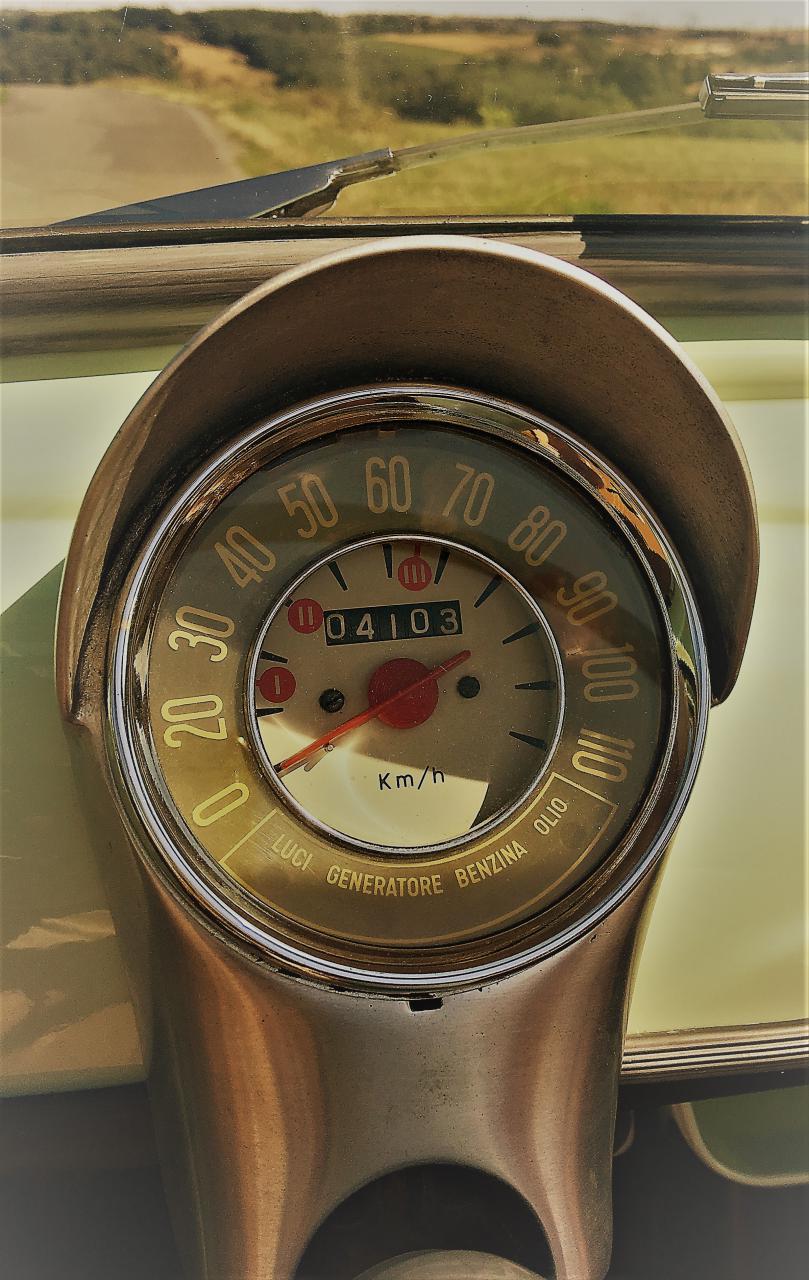 Donc pour le sujet de ce mois d'août, on va zoomer sur un détails qui vous plaît sur votre Fiatou : son regard avec ses petits yeux rouges ronds, son compteur, son rétro tout brillant, son cache culbu plein d'huile, ses boulot boulons rouillés ...  Chacun ses gouts !